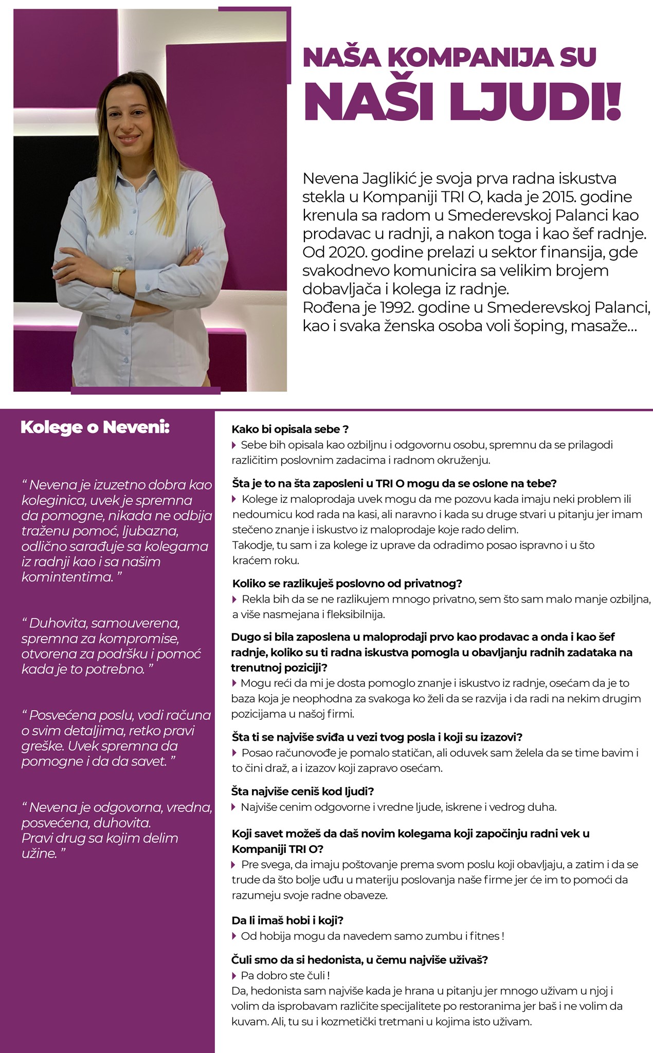 TRI O je prodična kompanija koja se trudi da se i zaposleni osećaju kao deo velike porodice!