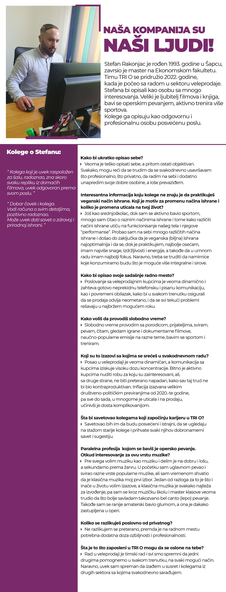 TRI O je prodična kompanija koja se trudi da se i zaposleni osećaju kao deo velike porodice!