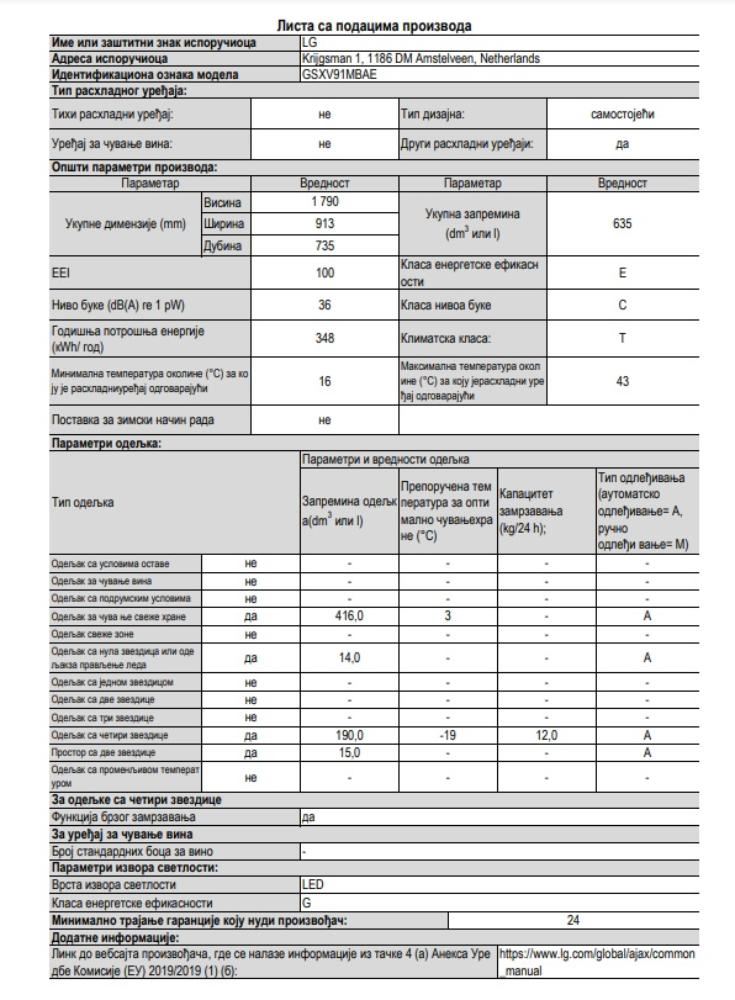 | Dimenzije (Š x V x D) | 913 x 1790 x 735 mm |