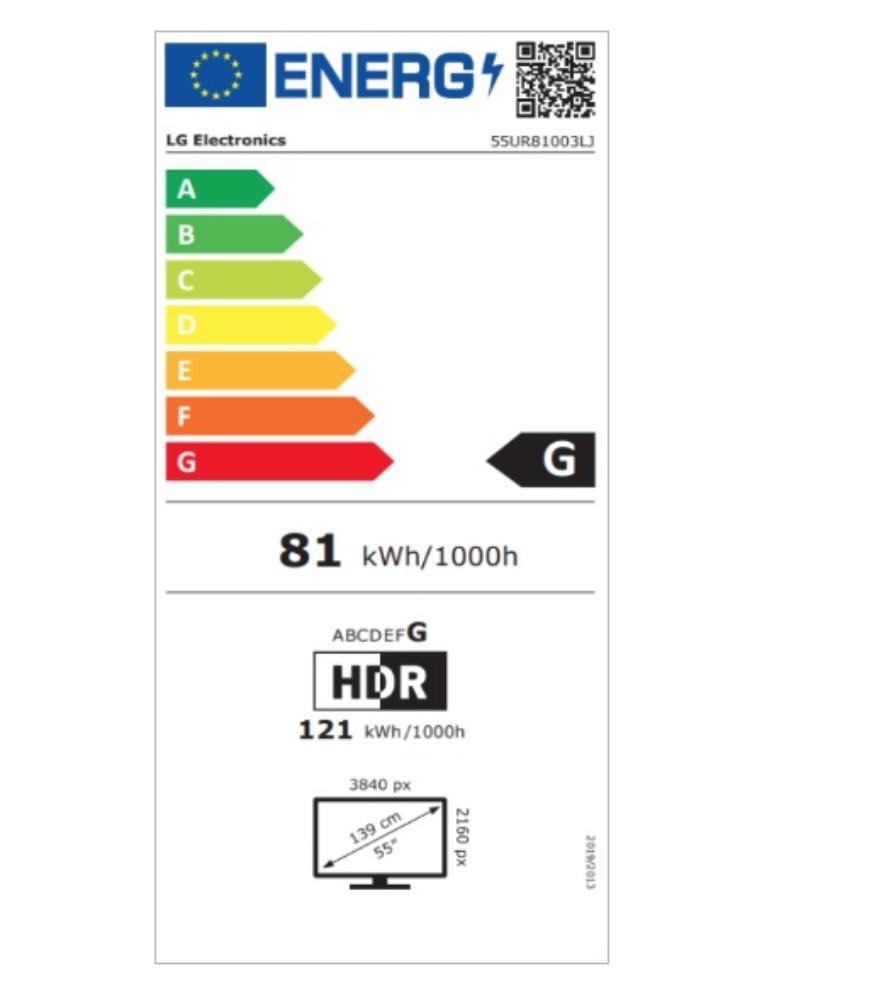 | Dijagonala ekrana | 55" (139.7 cm) |