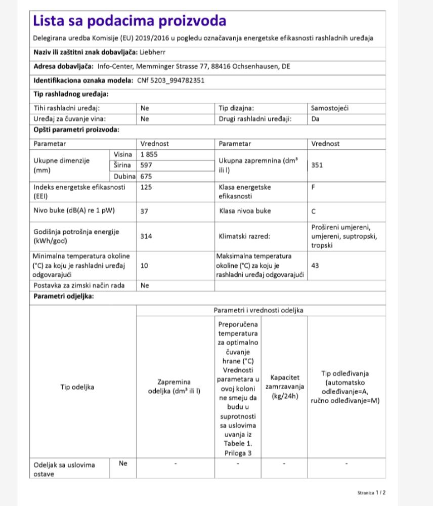 | Funkcije i karakteristike | SuperCool za održavanje odgovarajuće temperature koji se može podesiti na uređaju ili preko aplikacije SuperFrost koji se može podesiti na uređaju ili preko aplikacije BottleTimer DuoCooling osigurava da nema razmene vazduha između frižidera i zamrzivača Kontrola na dodir LED plafonsko osvetljenje PowerCooling sistem za ravnomerno distribuiranje hladnog vazduha EasyFresh održavanje svežine hrane |