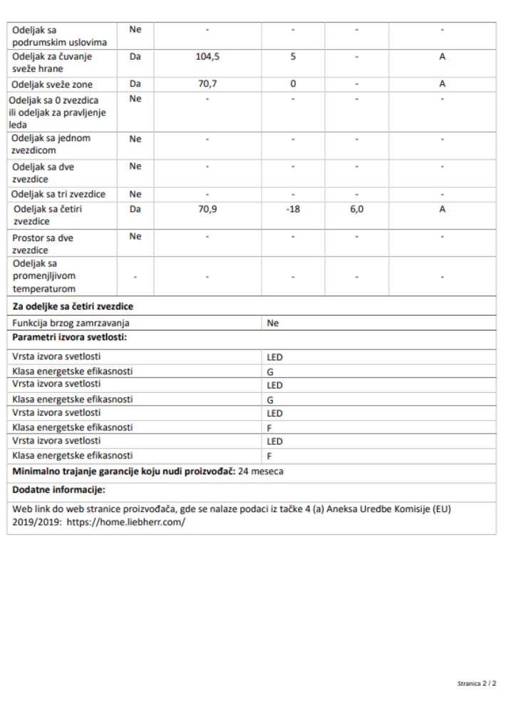 | Godišnja potrošnja električne energije | 207,70 kWh / godišnje |