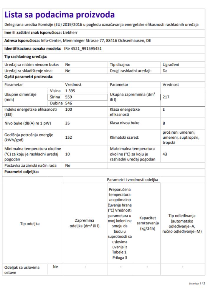 | Kapacitet frižidera |
