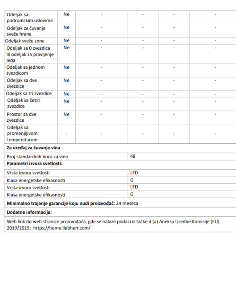 -temperatura vinskog kabineta: od 5°C + do 20°C