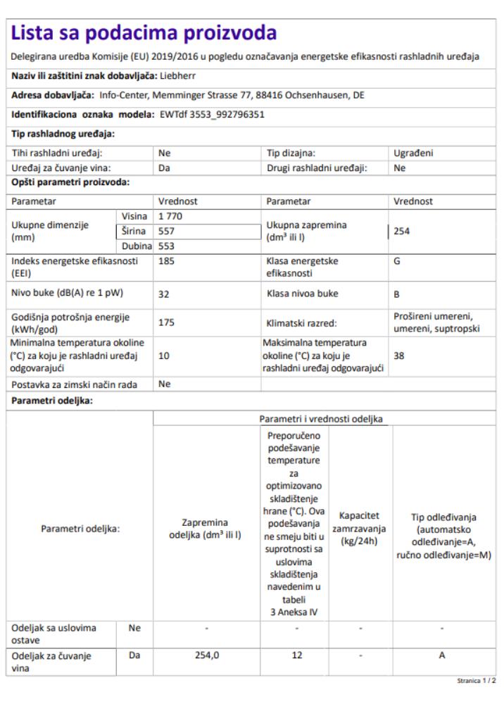 -temperatura vinskog kabineta: od 5°C + do 20°C