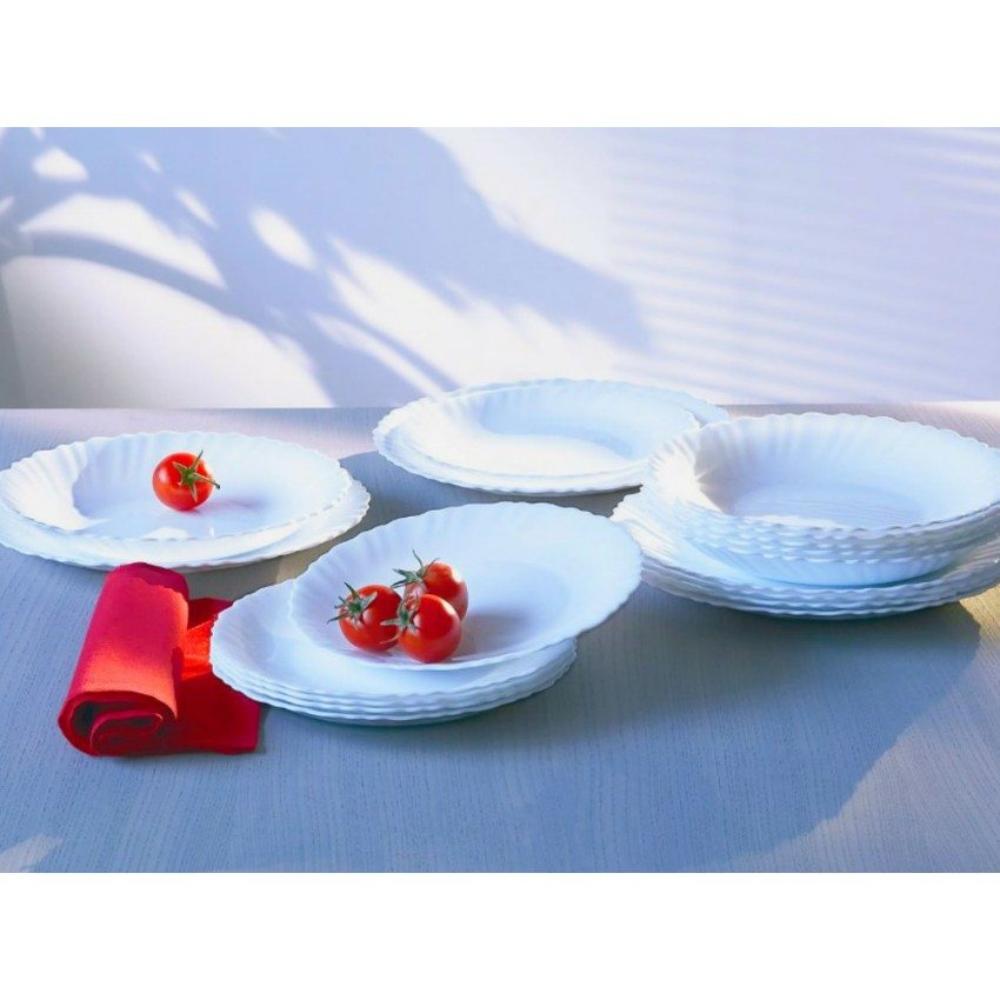 | Opis | Boja: Bela Materijal: Kaljeno staklo/Neporozno/Antibakterijsko Set tanjira Feston sadrži 18 delova: 6 plitkih (velikih) tanjira: 23 cm 6 dubokih (supenih) tanjira: 21 cm 6 desertnih tanjira: 19 cm Otporni na udarce. Laki za održavanje. Elegantan i moderan dizajn. Može se koristitu u mikrotalasnoj pećnici. Može se prati u mašini za pranje sudova. Otpornost tri puta veća od tradicionalnog stakla. Težina: 5.8 kg |
