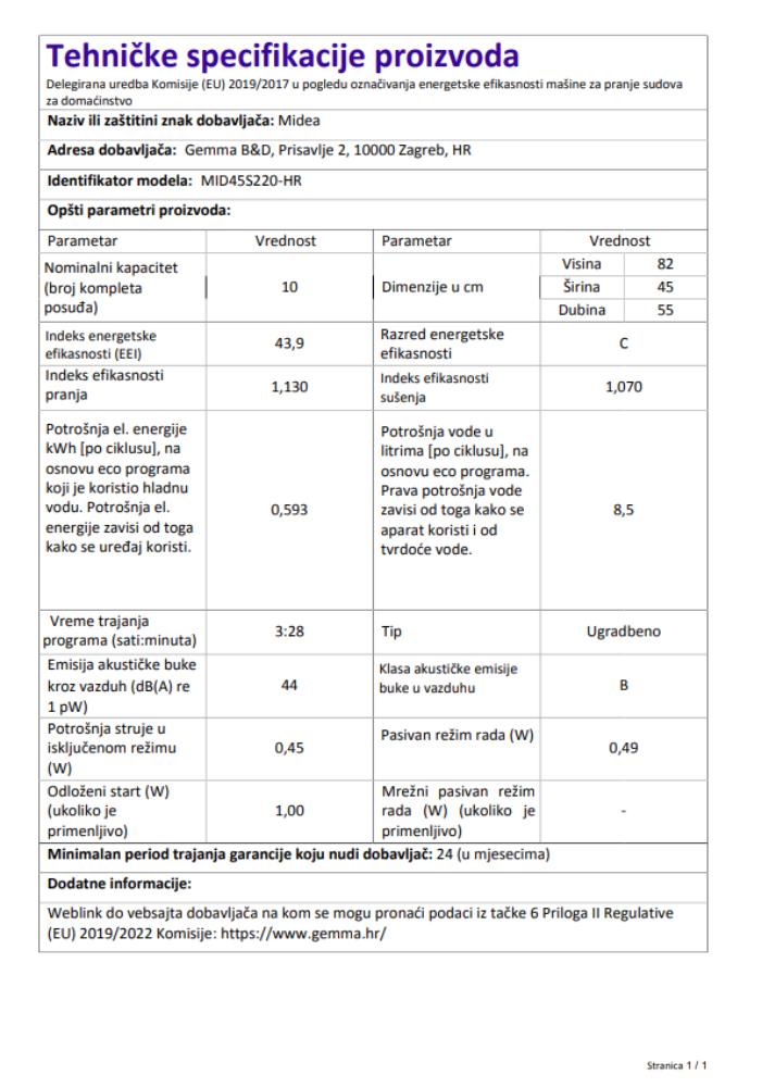 [na 100 ciklusa, na osnovu eko programa] (kWh) 67