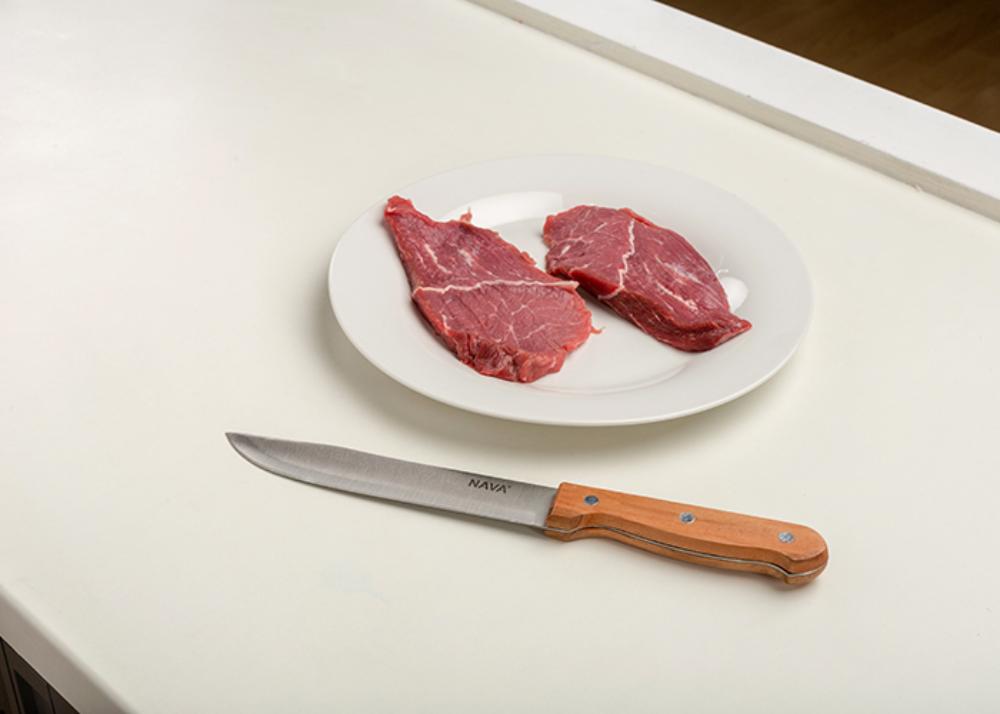 Mesarski nož Terrestrial iz NAVA ima usko, zakrivljeno i zašiljeno sečivo i idealan je za rezanje sirovog mesa na manje komade ili tanke kriške, seckanje komada mesa koji sadrže hrskavicu ili kosti, odvajanje kože ili masti od mesa. Pogodan je za svakodnevnu upotrebu i podjednako efikasan za seckanje voća ili povrća sa debelom korom, poput ananasa ili dinje.