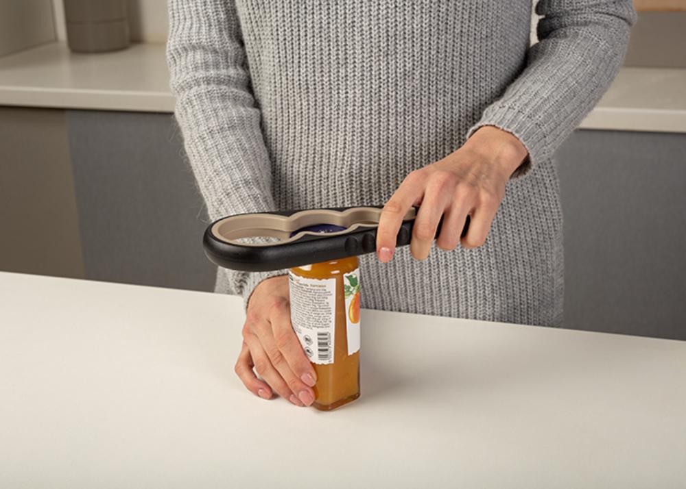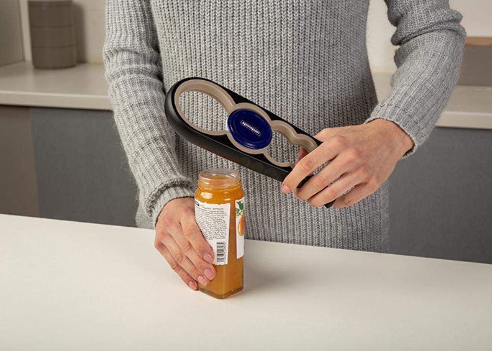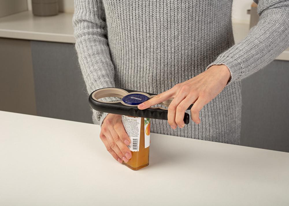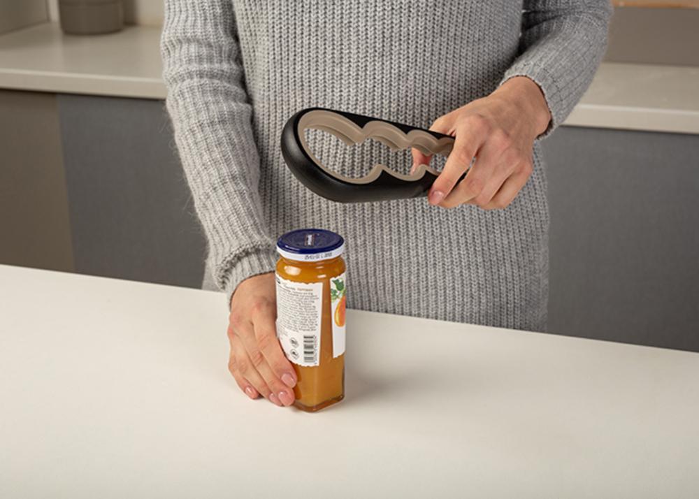 Ima 4 pozicije različitih veličina i može otvoriti skoro svaku teglu ili bocu sa poklopcem na navoj prečnika 2-8cm. Samo podesite poklopac u odgovarajući položaj, zategnite ručke rukom i okrenite ga. Pogodan za flaše bezalkoholnih pića i tegle džema ili sosa.