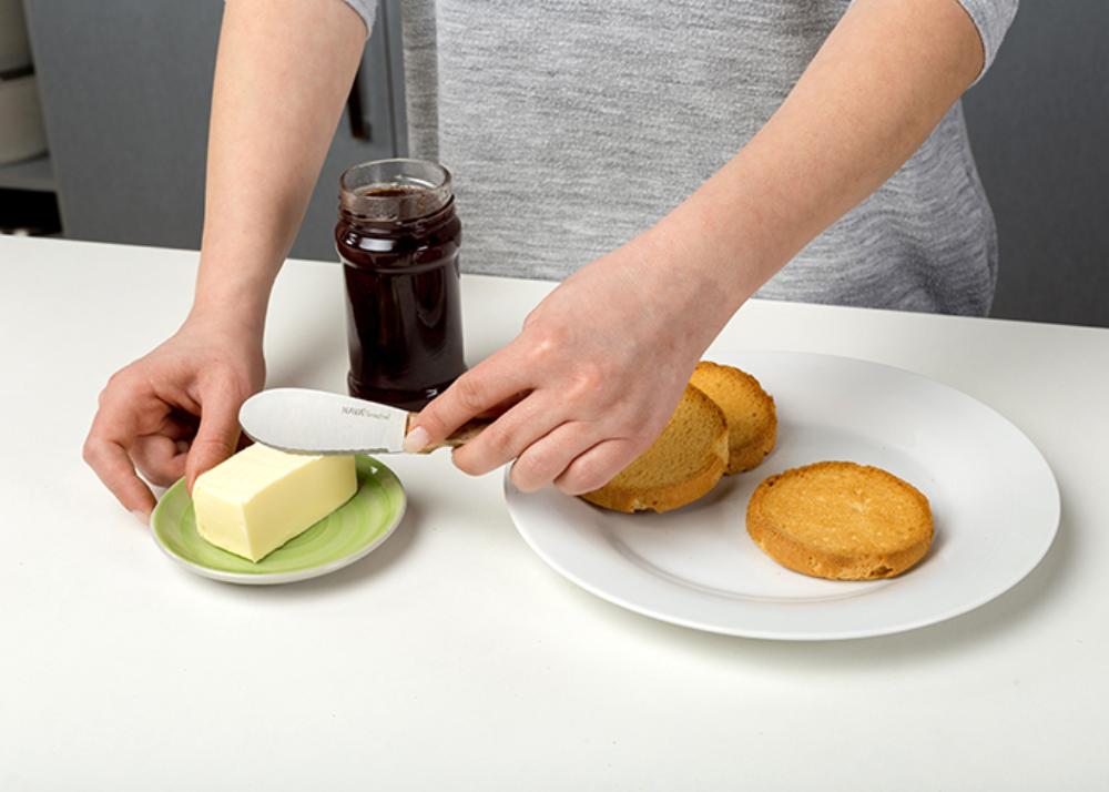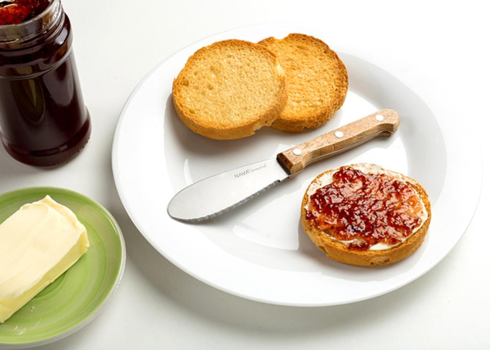 Nož za mazanje Terrestrial od NAVA je savršen nož za vaš doručak! Poseduje široko, zaobljeno sečivo, koje, za razliku od većine noževa za puter, ima i glatku i nazubljenu stranu. Glatka strana je pogodna za namazivanje hleba puterom, džemom, medom, dok je nazubljena namenjena za sečenje slanine, sira ili čak hleba.