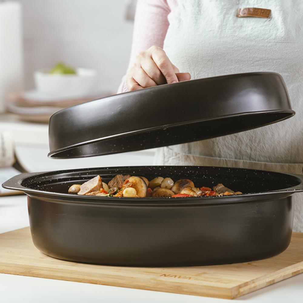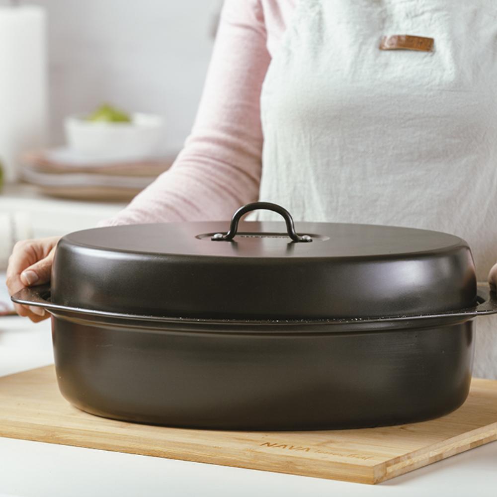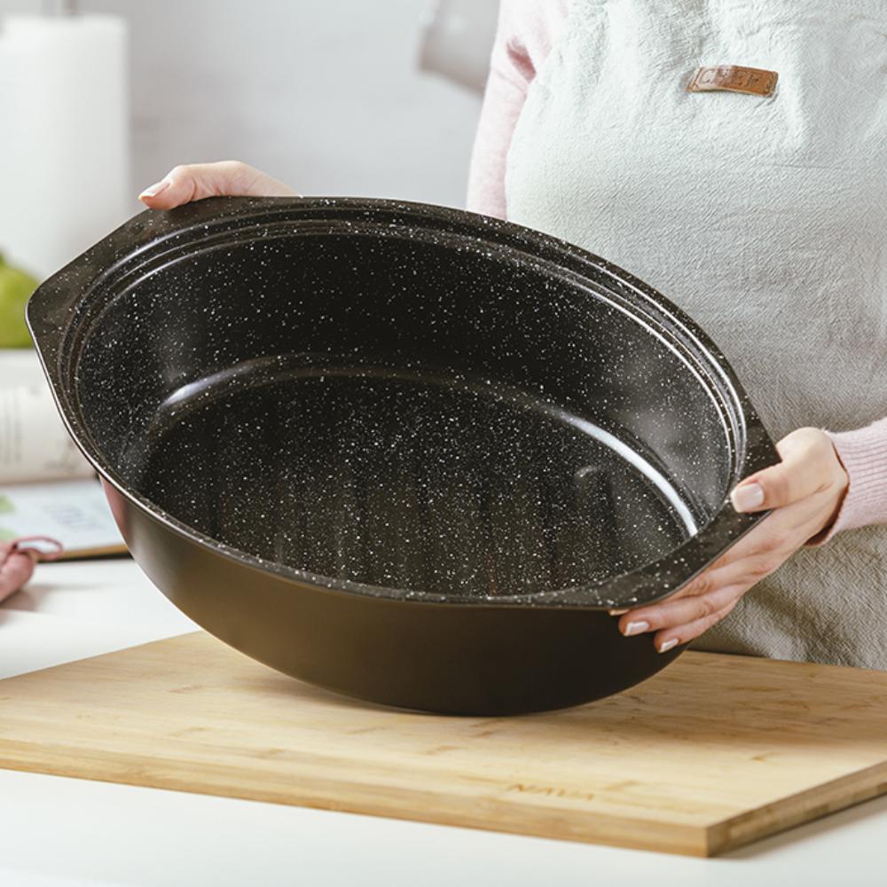 | Opis | Ovalni pekac od ugljeničnog čelika NATURE sa 3 sloja nelepljivog kamenog premaza. Napravljen od ugljeničnog čelika, sa 3 sloja nelepljivog kamenog premaza omogućava ravnomerno rasporedjivanje toplote, dajući savršen rezultat kuvanja, omogućavajući uštedu energije. Izuzetno izdržljiv nelepljivi premaz garantuje savršen ukus, a istovremeno obezbeđuje zdravo i ravnomerno kuvanje, lako čišćenje i dugotrajnu otpornost na svakodnevnu upotrebu. Proizvodnja uključuje procese sa niskim emisijama ugljenika i isključuje PFOA. |