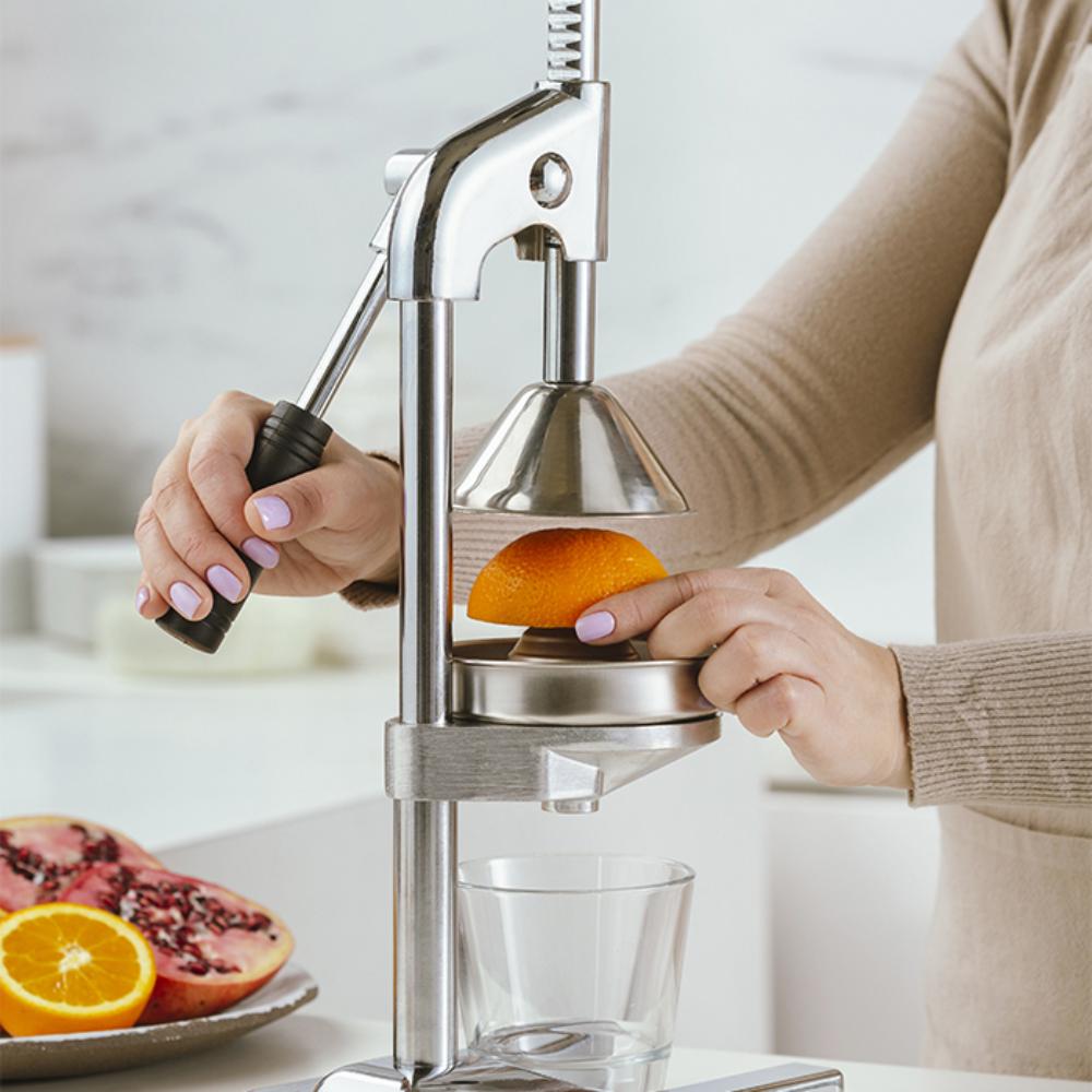 Ceđenje vašeg omiljenog voća sada je proces u jednom koraku: prepolovite pomorandzu i stavite je u cediljku prese. Gurnite ručicu nadole i ne propustite nijednu kap svog omiljenog voća.