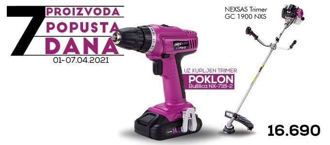 Sve do 07.04 TRI O uz svaki kupljeni NEXSAS trimer poklanja bušilicu, saznaj više ....