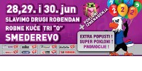 Kompanija Tri "O" vas poziva na prvi rođendan Robne kuće u Smederevskoj Palanci. Povodom proslave uspešne prve godine poslovanja za sve kupce su obezbeđeni pokloni i popusti. Širok spektar odličnih brendova bele tehnike, kao i gvožđarske robe daju popuste specijalno povodom rođendana.