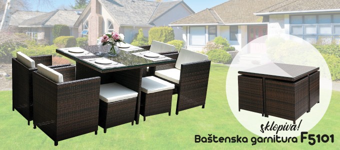 Baštenska garnitura NEXSAS F5101 sastoji se od stola, 4 fotelje i 4 taburea. Može komotno da smesti osmoro ljudi za vaš sto, a onda kada vam to nije neophodno lako se taburei sklapaju u prostor ispod stolice.
