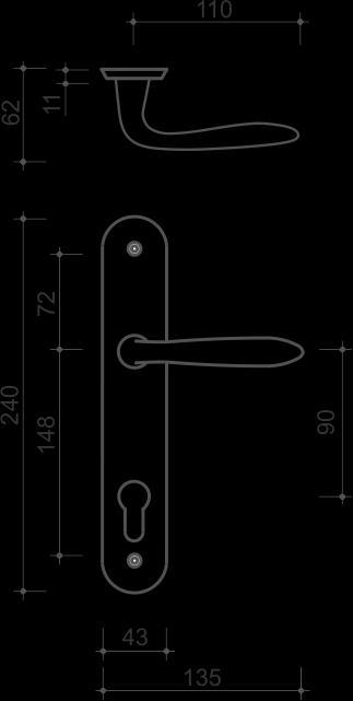 Kvaka sa šildom i oprugom za sobna i unutrašnja vrata