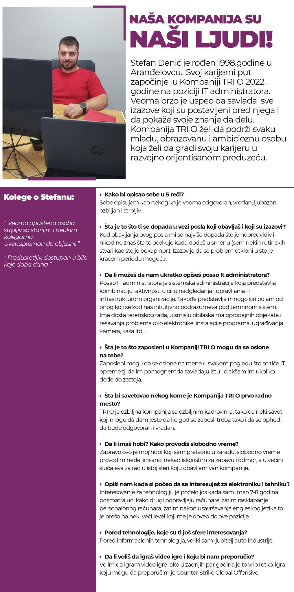 OD HOBIJA DO ZANATA! UPOZNAJTE STEFANA, KOJI JE SVOJU KARIJERU POČEO U KOMPANIJI TRI O!