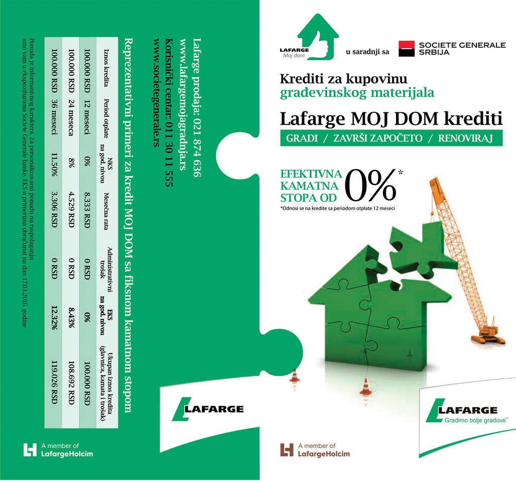 Od sada Lafarge Moj dom krediti u našim prodavnicama!