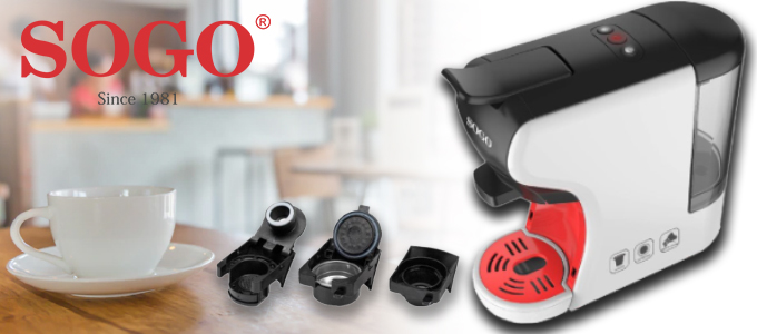 Naš Sogo aparat za kafu nije običan aparat već 3 u 1. Ima 3 adaptera kompatibilna