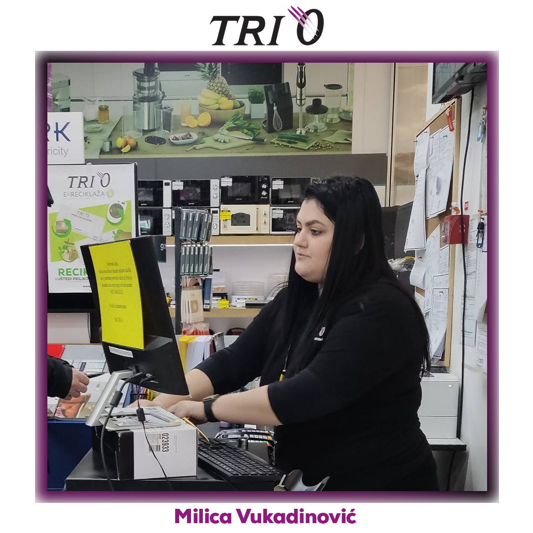 Jedina mana - lako se naljuti kad ne poređam impulsnu kako se njoj dopada (pošto ja dužim kasu), mada je to zanemarljivo…svako ima svoj lični osećaj za pravdu ili “ono što je ispravno”. Zajednički jezik smo našle kad sam joj popustila i kad je ona meni prepustila prodaju i informacije oko nekih drugih stvari kao što su pločice i sve vezano za njih ili građevinski materijal. Karakteristično, nikad nikad ne moljaka, samo ume drčno da kaže: “Ajde ti ovo, ti imaš živaca”, što mene obori s nogu, jer njoj nije mrsko da prizna neku slabost, ali i dalje je sa stavom, a stav je za Milicu sve. Za nešto što ja nekad “nemam živaca” ima ona i sve se taman uklopi. “
