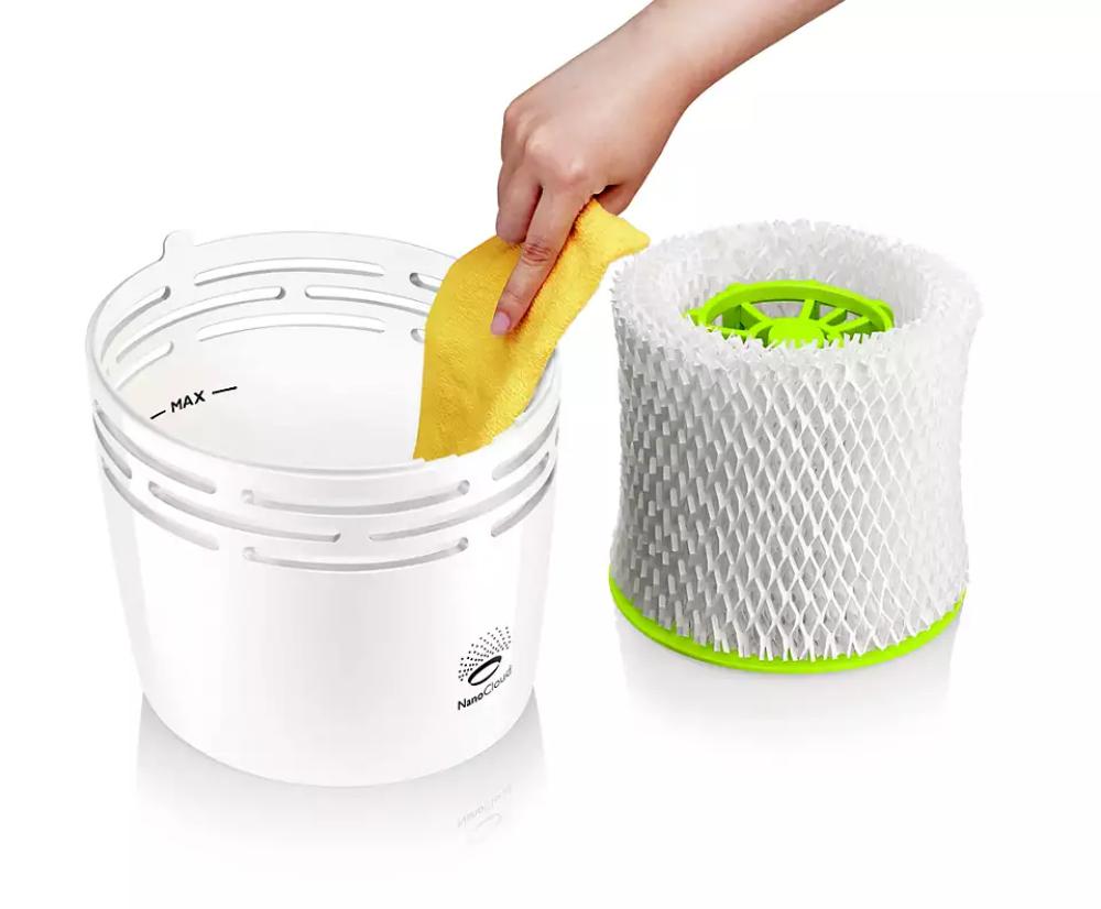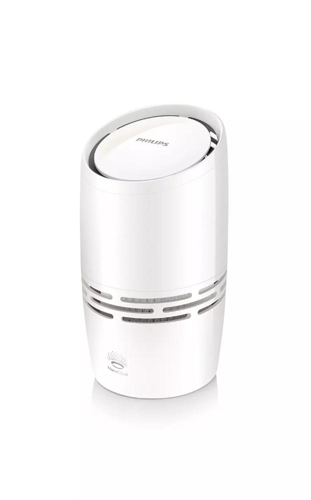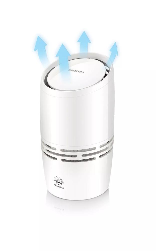 Ovaživač vazduha, sa tehnologijom NanoCloud - Higijenski sigurnije, bez bele prašine i mokre radne površine ,Ravnomerno raspoređuje ovlaženi vazduh u prostoriji,Moderan dizajn osigurava najlakše čišćenje u klasi, rezervoar za vodu koji se lako puni, Automatsko isključivanje kada ovlaživač potroši vodu, Odaberite između tihog i standardnog i ovlaživanja, Kapacitet ovlaživanja 150 ml/h, rezervoar za vodu 1,3L, nivo buke 27 – 40 db, HU4136 filter zamenite svaka 3 meseca