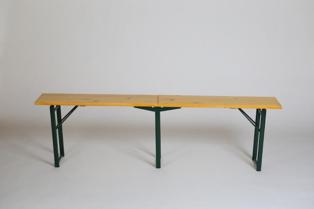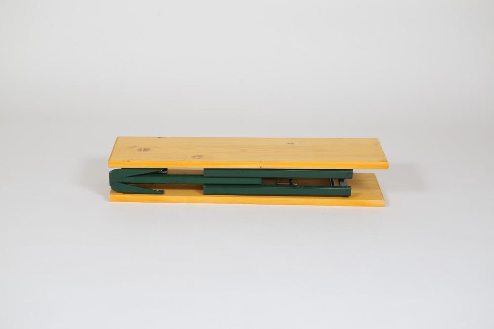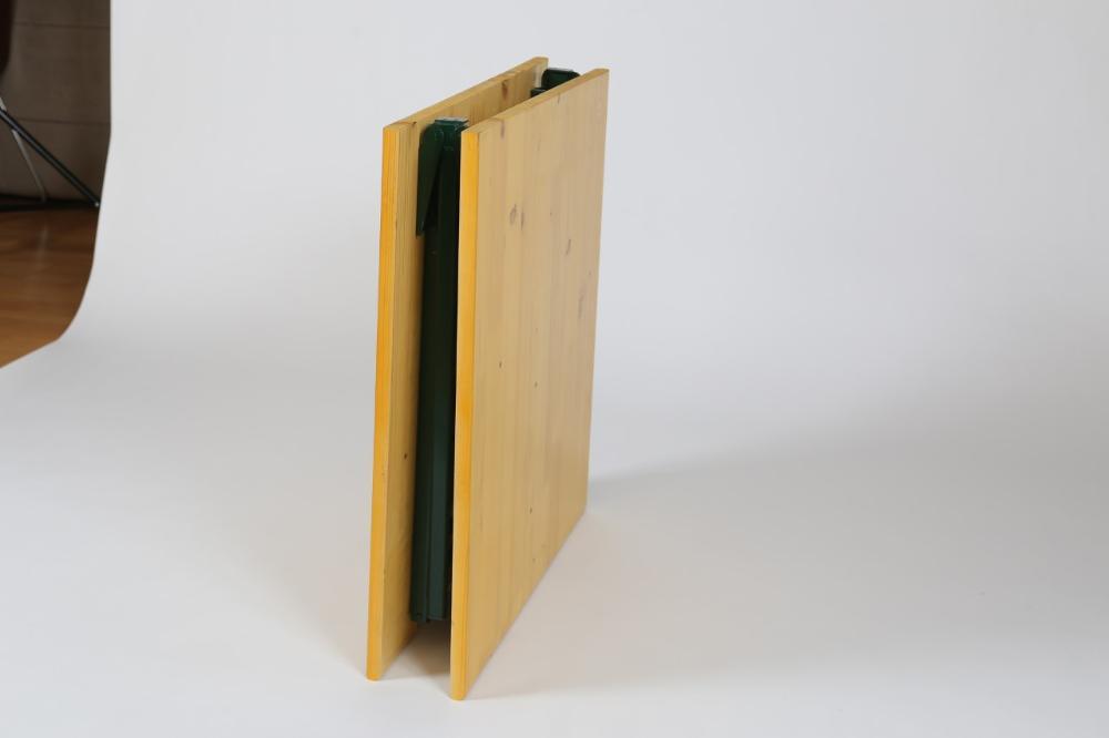| Opis | Rasklopivi pivski sto sa dve sklopive klupe. Prirodna boja drveta smreke. Metalna konstrukcija. |