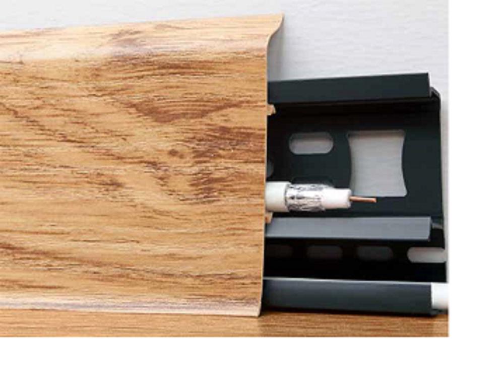 INDO lajsna za laminat ima profil od 70mm, i predstavlja idealno rešenje za sakrivanje svih kablova. Atraktivne boje, i 4-way sistem montaže će učiniti da uklapanje sa laminatom bude jednostavno. U tome će pomoći i fleksibilni krajevi koji amortizuju sve neravnine na podu i zidu. Uz svaku kupljenu lajsnu dobijate i nosač pomoću kog ćete lako postaviti lajsnu na svoje mesto. Efekat drveta se dobija pomoću specijalne folije koja ima strukturu drveta. INDO lajsna je jedini model na tržištu koja u svojoj paleti boja ima belu (sjajnu i mat) i crnu(sjajnu) boju. Dužina lajsne je 250cm.