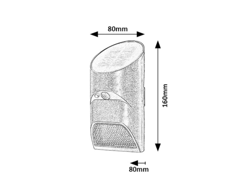 Kategorija Spoljna rasveta Tip Solarna rasveta Stil lampe Moderna Preporučena prostorija za korišćenje terasa, zid kuće Temperatura boje (K) 4000 Specifikacije izvora svetlosti 3.6W Svetlosni tok izvora svetlosti (lm)150