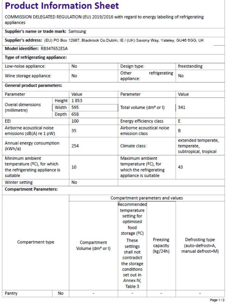 | Ostalo | Višestruk protok hlađenja Sveobuhvatno hlađenje Power Cool funkcija Power Freeze funkcija Alarm za otvorena vrata Autonomno vreme rada - povećanje temperature: 18 h Displej i komande spolja, na vratima Režim za odmor Klimatska klasa: SN, N, ST, T |