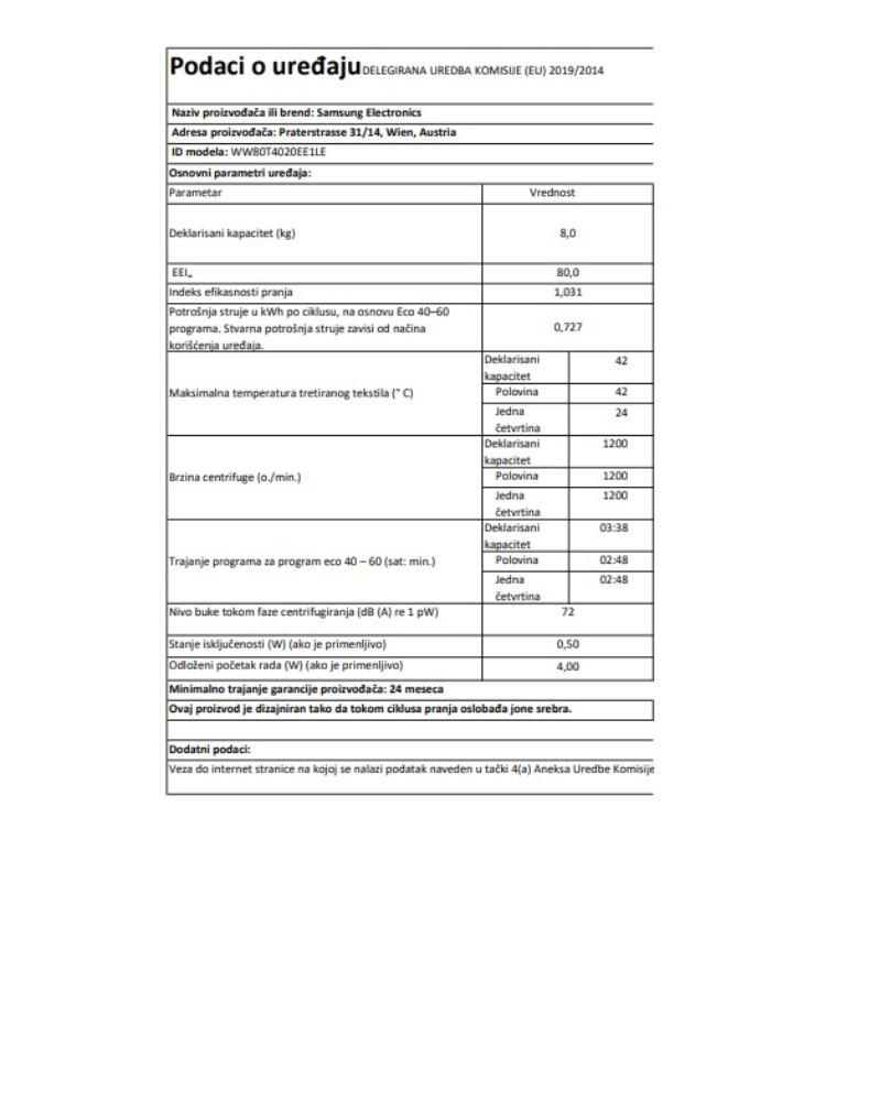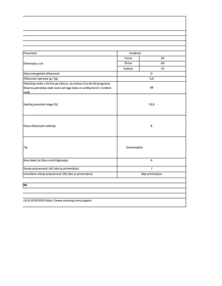 | Tip | Samostojeća mašina za pranje veša |