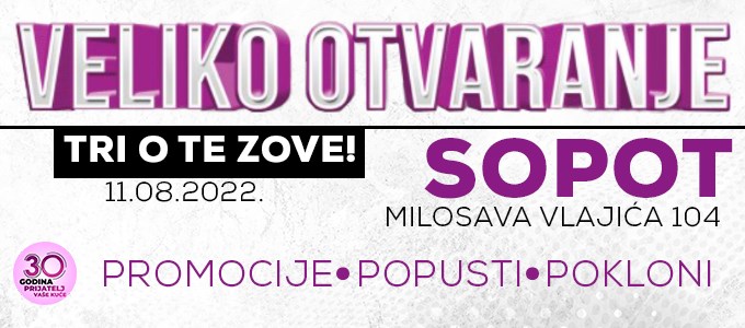 Družimo se sa vama u Sopotu od 11.08.2022. na adresi Milosava Vlajića 104!