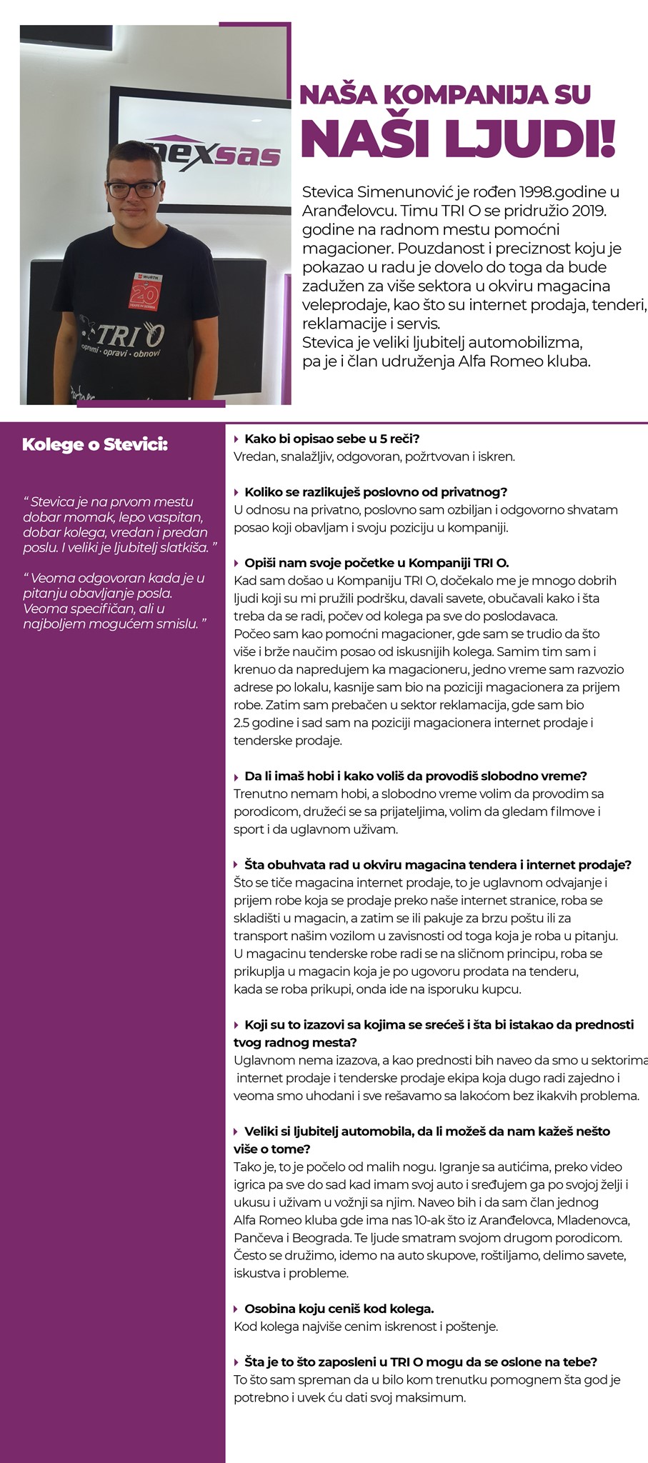 TRI O je prodična kompanija koja se trudi da se i zaposleni osećaju kao deo velike porodice!