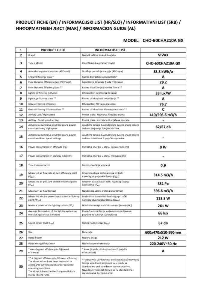 Minimalna / Maksimalni nivo buke: 62 dB / 67 dB,