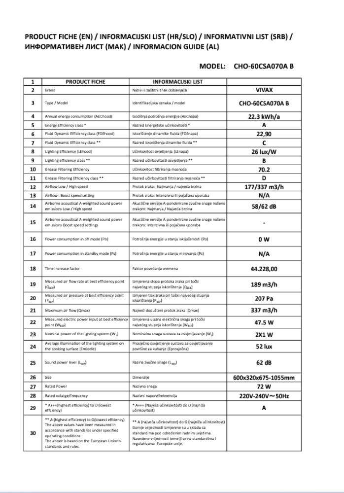 Minimalna / Maksimalni nivo buke: 58 dB / 62 dB,