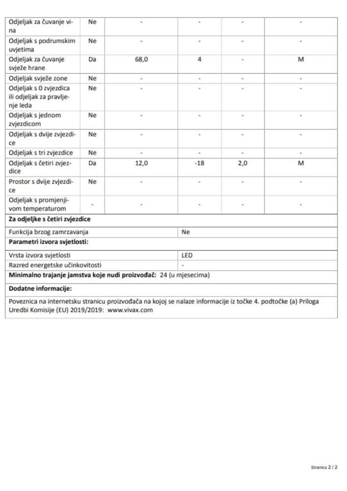 | Kapacitet frižider | 68 L |