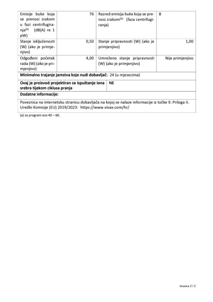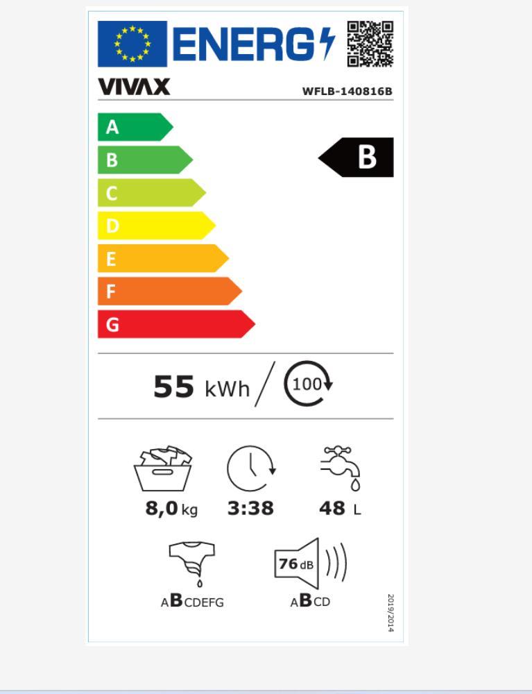 energetske efikasnosti B, Maksimalni nivo buke 76 dB,