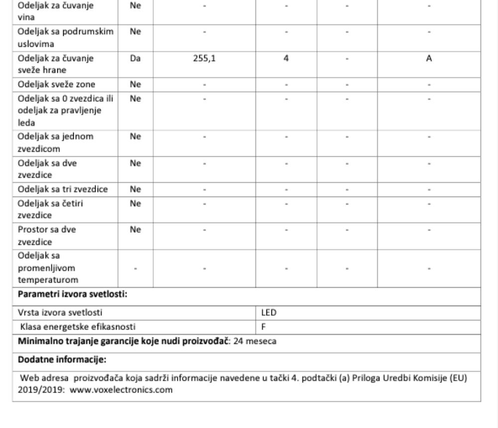 5 staklenih polica, 1 fioka, 4 police na vratima, posuda za jaja