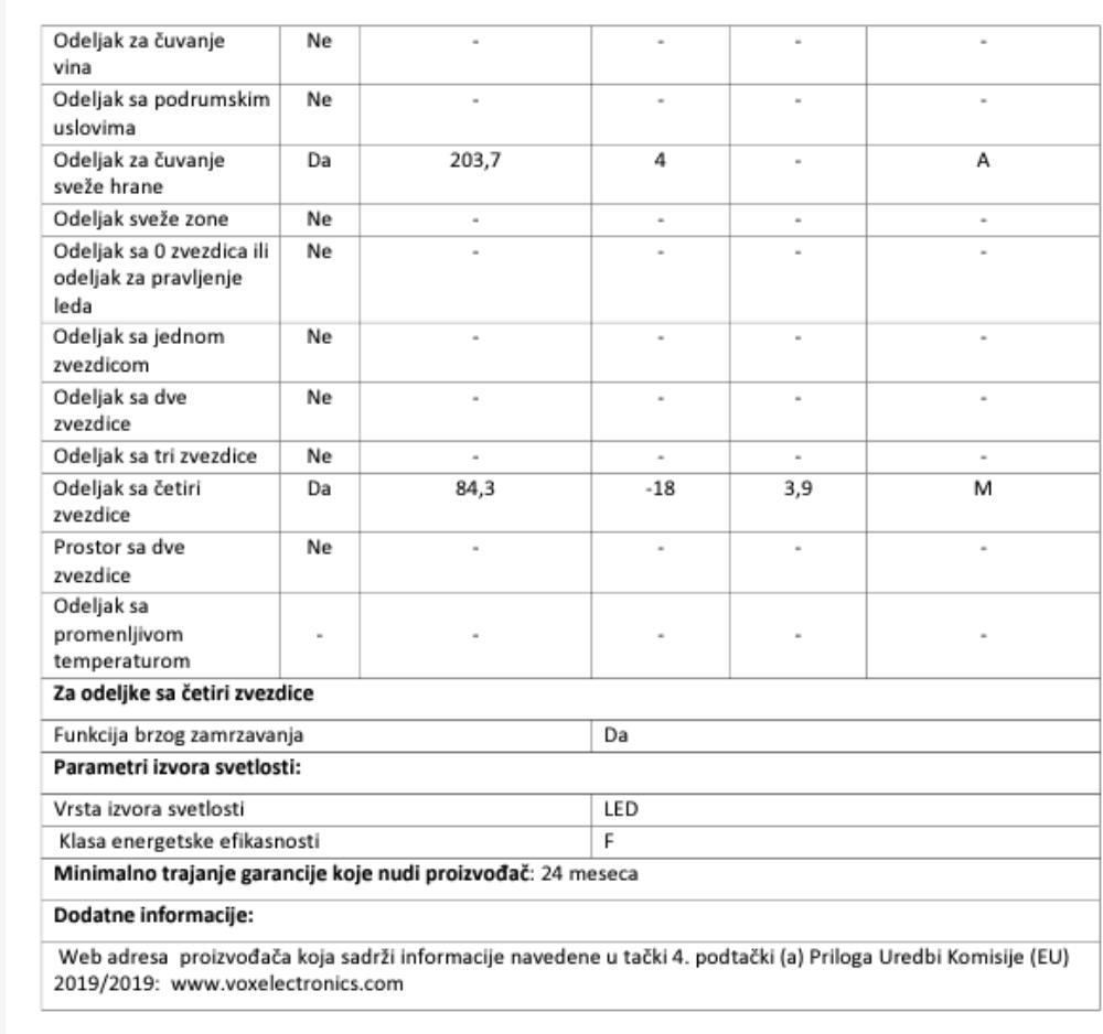 | Potrošnja el. Energije | Godišnja potrošnja: 280 kWh |