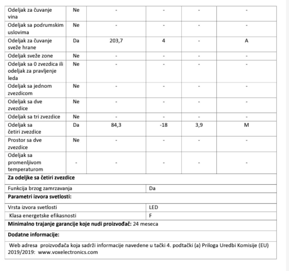 | Kapacitet zaleđivanja zamrzivača | 4 kg |