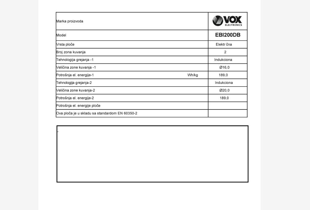 | Tip ploče | Indukciona staklokeramicka ploca |