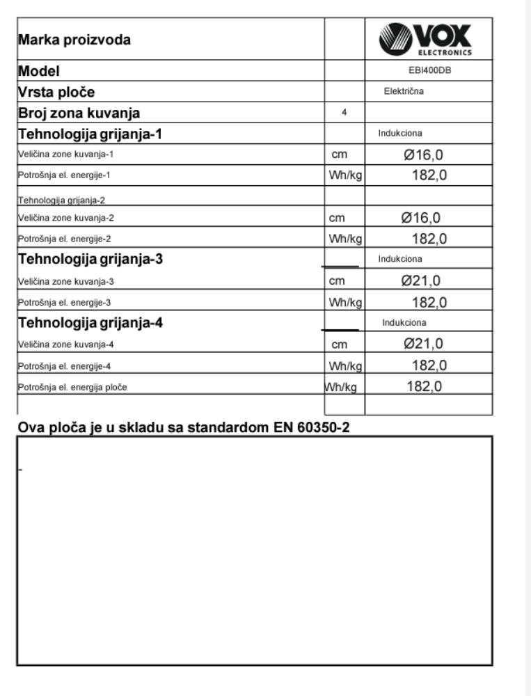 | Ploce/Zone za kuvanje |