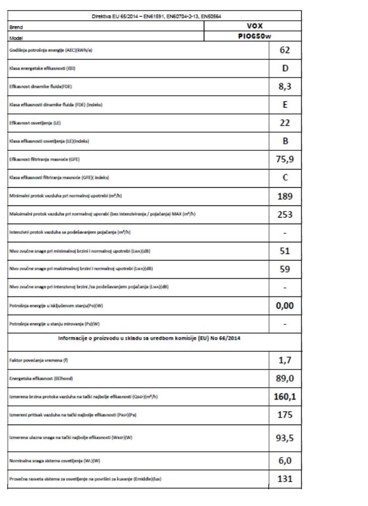| Maksimalni protok vazduha kod odvodnog rada | 253m3 |