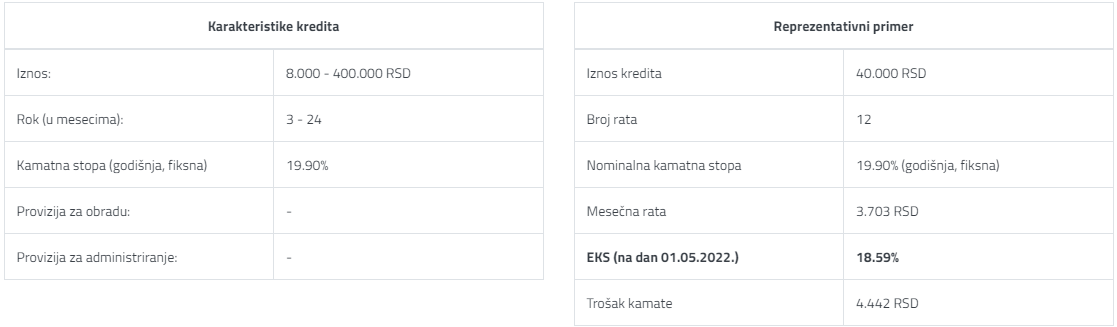 • Web kredit je dostupan svim građanima u iznosu od 8.000 do 400.000 RSD.